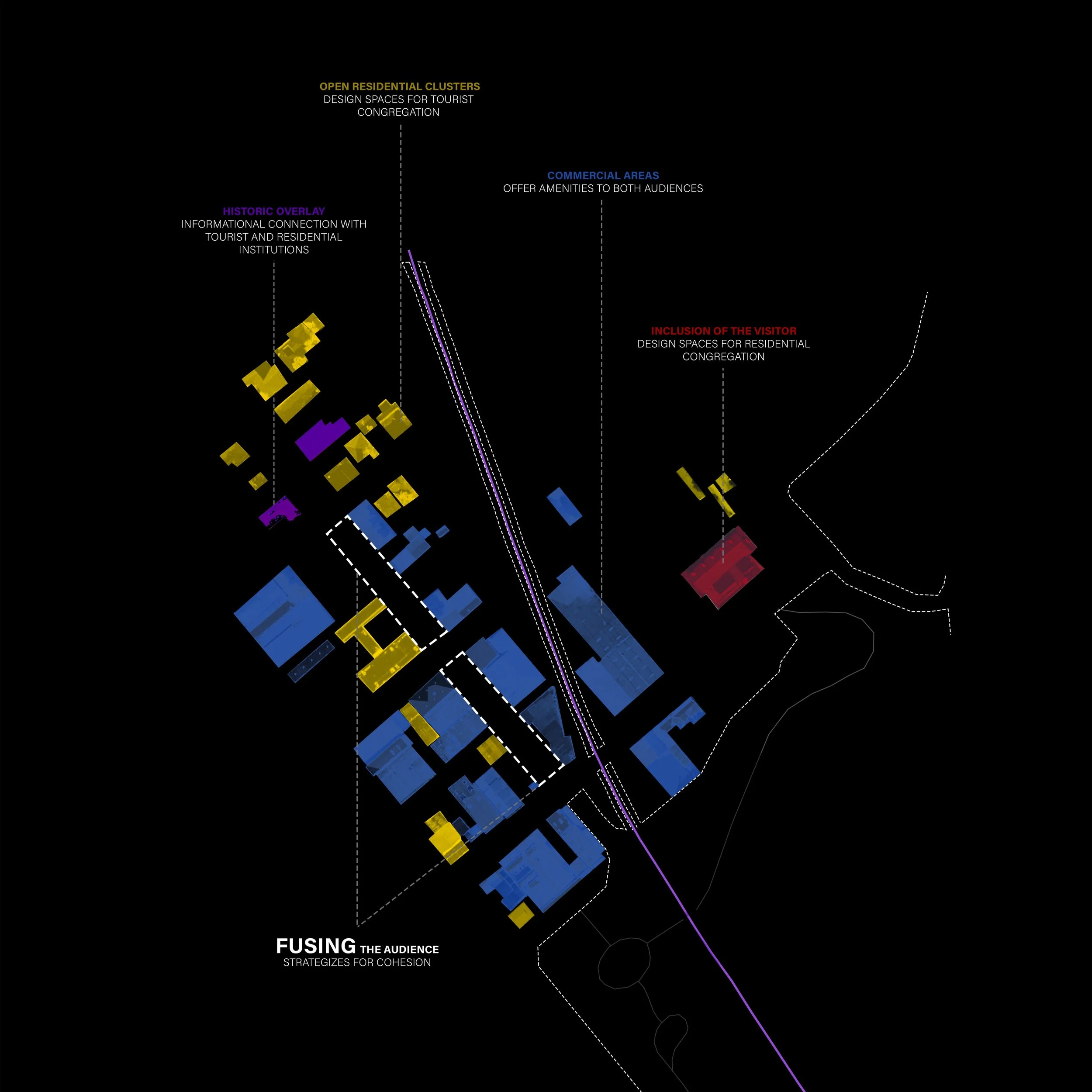 With residents witnessing the dilapidation of their land by the on-going flood plain, train noise pollution, and lack of development in their historic district, this reformation intends to restore the social harmony and apprehension between residents and tourists by providing a framework built on collaboration.